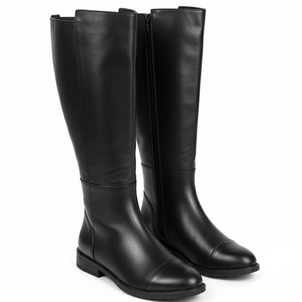 این بوت با چرم باکیفیت و دوخت ظریف ساخته شده و بهخاطر داشتن زیپ بغل و کش کناری، پوشیدن و درآوردنش خیلی راحته — مخصوص خانمهایی که ساق پاشون تپلتره.