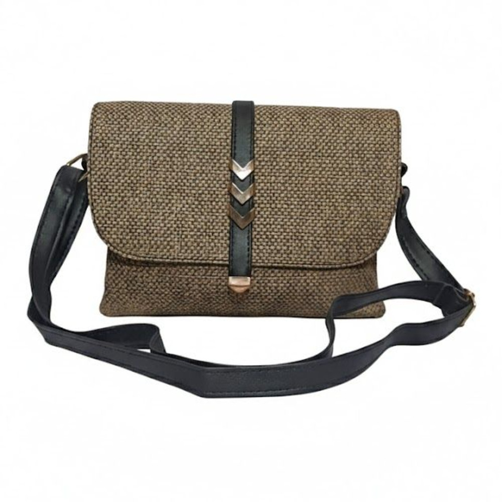 سه زیپ مجزا داره، سبک، جادار و از چرم مقاوم با طرح کنف ساخته شده.